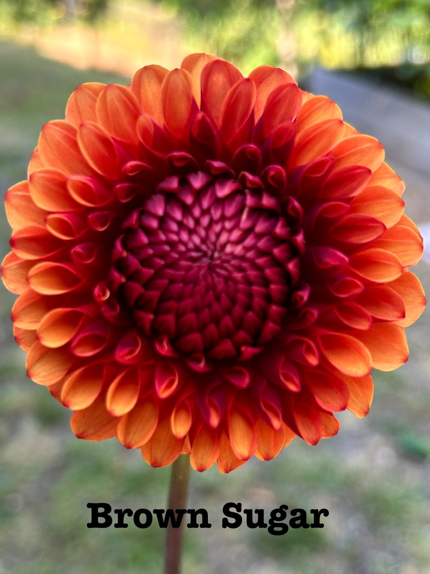 Brown Sugar is a rich rusty red ball that darkens towards the center and on the backs of the petals. A perfect flower for fall!